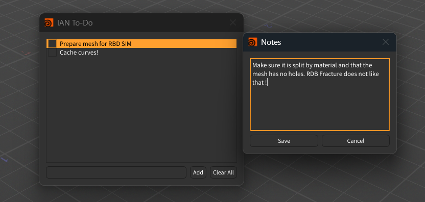 Made a tool to create a TO-DO list in Houdini using python. For those times where you want to add more info somewhere and those built-in notes are just not cutting it.